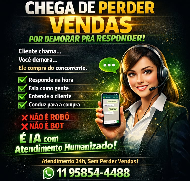 É uma inteligência artificial que atende clientes pelo WhatsApp com naturalidade e agilidade.